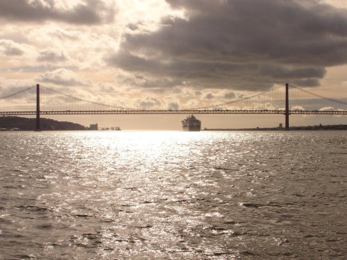Vestia-me de preto: todas as peças de roupa e minha visão era toda dela que fazia-me barulhos e pequenos murmúrios de quem estava prestes a tocar o mar com aquelas águas doces e profundas. O Tejo parecia um rapaz apaixonado a correr pelo amor de sua rapariga com tanto entusiasmo como se buscasse nela ao primeiro beijo, a primeira carícia, o primeiro afecto. Amantes, a mar e o rio. Assim o pareciam. Mesmo eu, pobre ser sorumbático, ensimesmado e triste via-me enredado na vida daquele casal belo que a natureza formou.